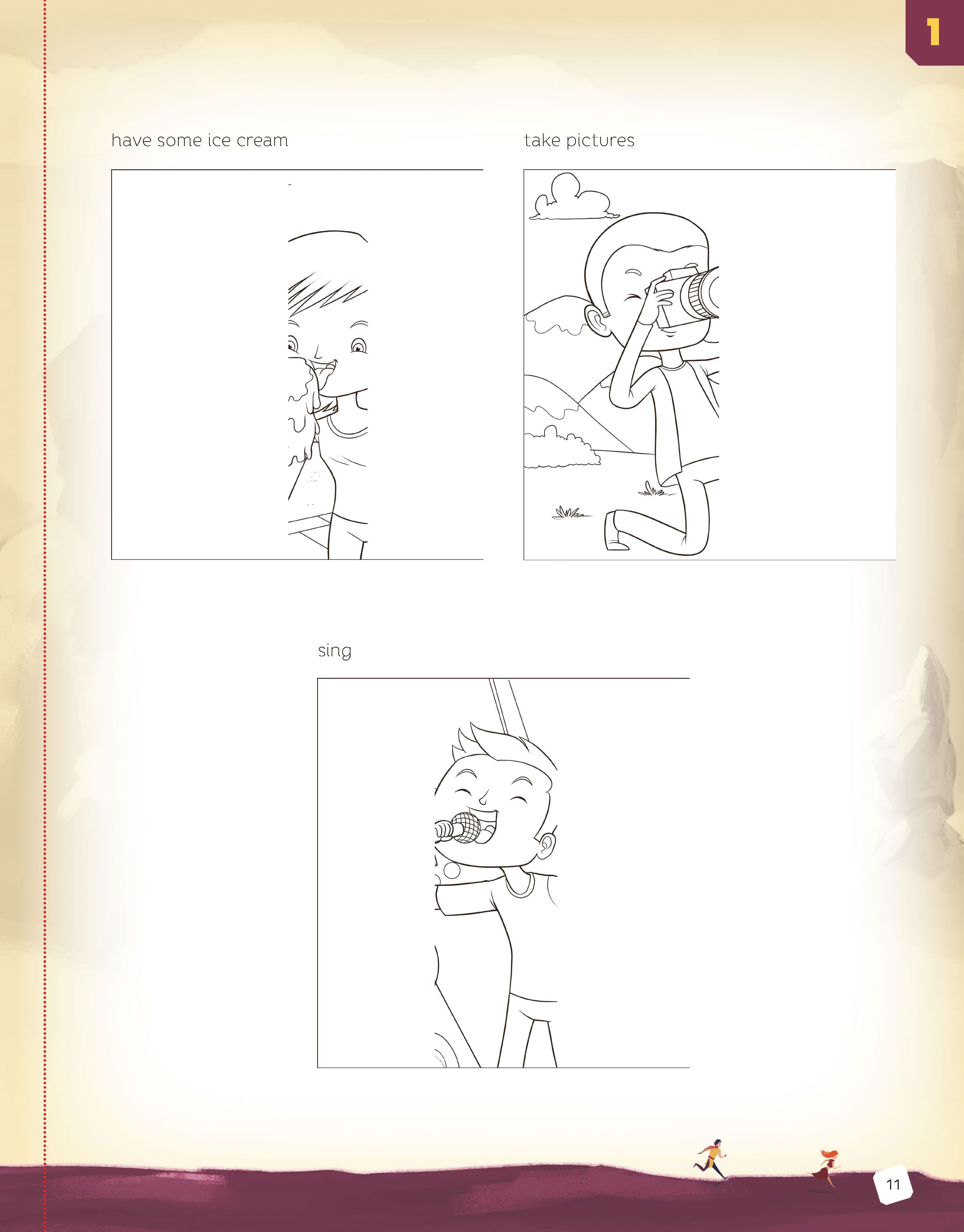 • Ask students to open the Activity Resource Book to pages 10 and 11. The pictures show some people performing some actions students have learnt during Unit 1.