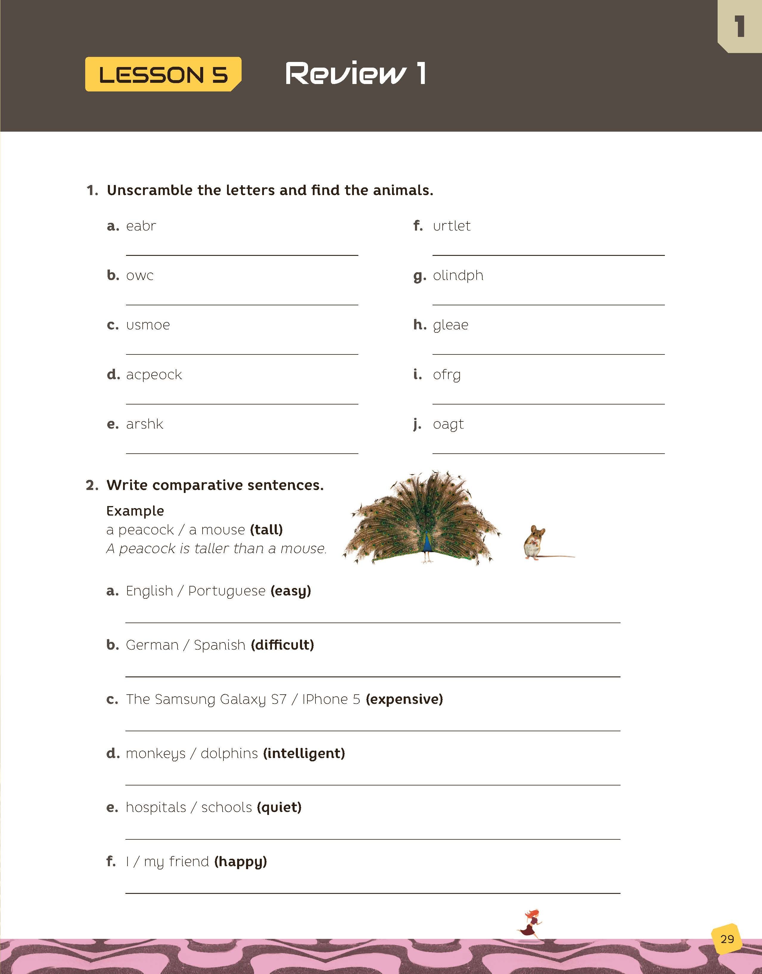• Open the Workbook to page 29 and explain the exercises to students. Tell them that they’re going to do some exercises to practise the content learnt in class. They should refer to the Student’s Book if they have any questions. Clarify any questions
