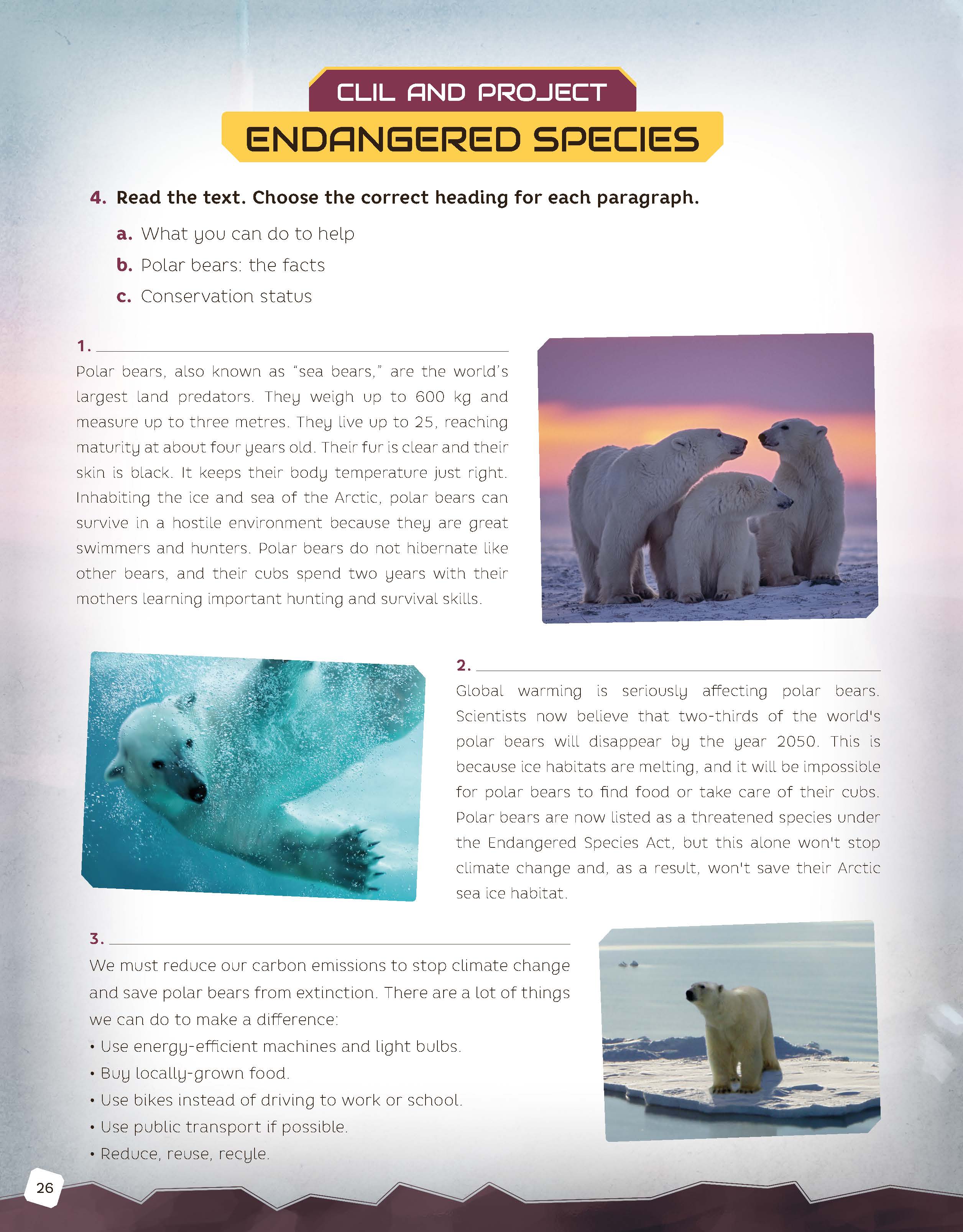 3. STUDENT’S BOOK: CLIL and Project, pages 26 and 27, exercises 4 to 7