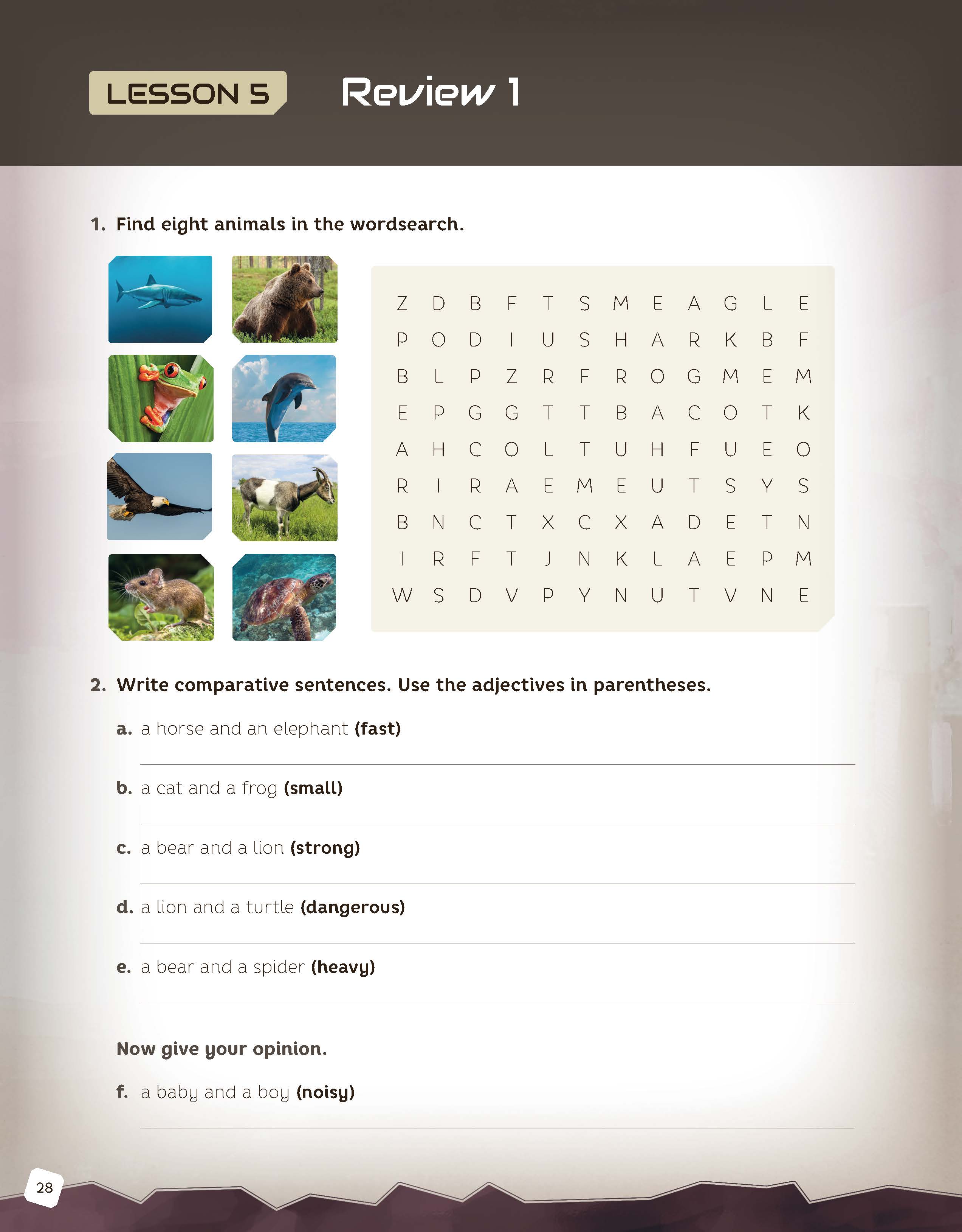 • Exercise 6: Discuss the actions listed in exercise 6 with students, asking them to circle the possible correct actions to take. Talk about all the actions listed in the book and elicit from students other ideas they might have about protecting animals.